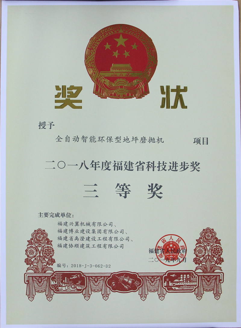 2018年度福建省科技進(jìn)步獎(jiǎng)三等獎(jiǎng)
