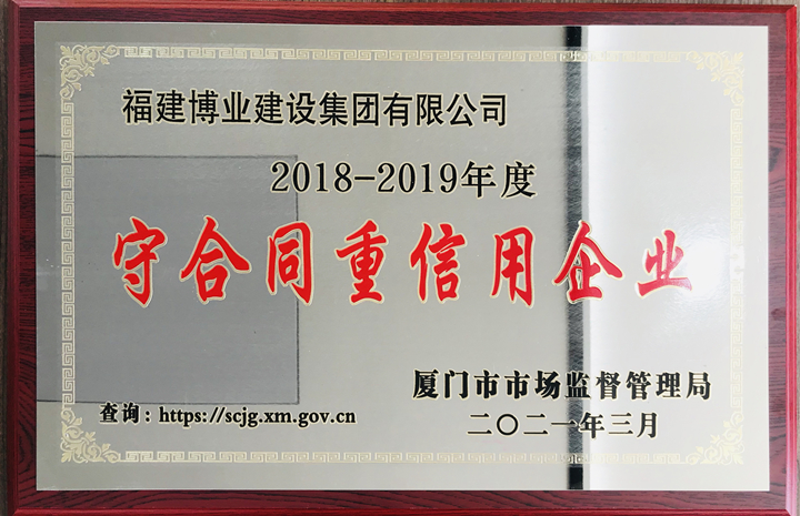 2018-2019年度廈門市守合同重信用企業(yè)